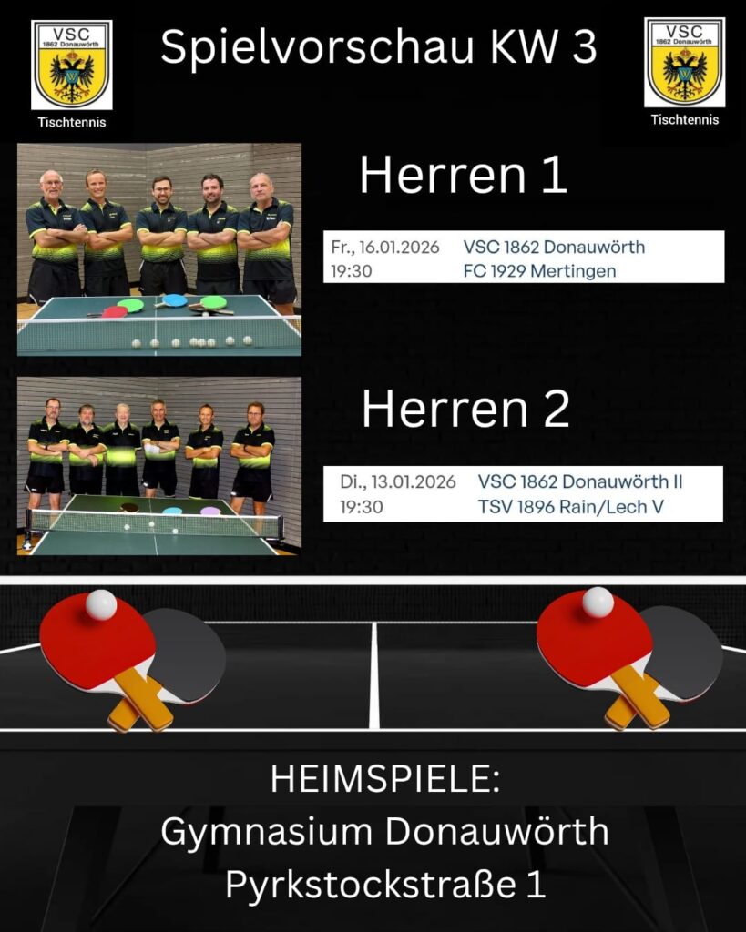 Unsere Neuzugänge ab der Saison 2025/26: Die VSC-Urgewächse Uli Foag und Joel Mittel kehren aus Dillingen zurück, Gerd Sattler wechselt von der Spvgg Riedlingen - Viel Erfolg beim VSC Donauwörth!